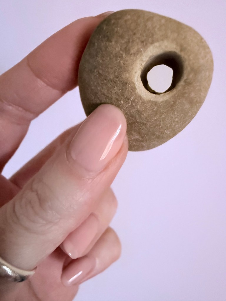 Hag stones slip fittingly into the realm of buried secrets. They’re formed slowly and invisibly. Water wears away stone, grain by grain, until something unexpected opens at the centre. There’s no drama or violence about it, just persistence. Time doing what time always does, whether we notice or not.
